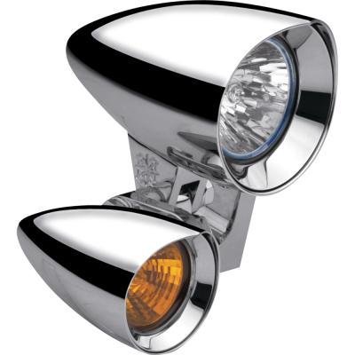 #Chrome-plated aluminum constructionIncludes two powerful 2in 35W spotlights and mountsAlso includes two bright 20W 1 3/8in turn signals and two turn-signal-to-spotlight extension mountsAll hardware includedMade in the USAAll items are sold individually unless specifically described otherwise in the product description