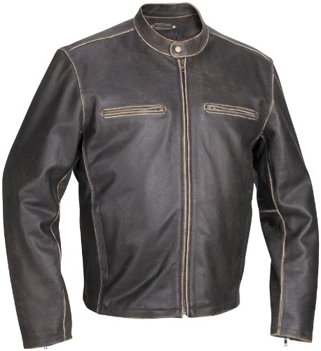 #Quality, medium-weight leather provides protection and comfortThe distressed finish (as in many miles) has a greatlook and feel2 front chest intake combination vents/pockets and 2 vertical rear exhaust vents keep you cool2 front, waist-level, on-seam zippered pockets to hold essentialsThe fully-sleeved, removable, insulated liner has a built-in pocket for most mobile devices1 zippered placket pocket allows easy access to important contentsSnap closure tab collar provides a secure fitIncludes 2-year manufacturers warrantyChest 42Waist 34Sleeve 34All items are sold individually unless specifically described otherwise in the product description