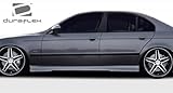Duraflex FRP BMW 5 Series E39 HM-S Side Skirts 2pc > 1997-2003. Extreme Dimensions has revolutionized fiberglass marketing with their premium Duraflex aerodynamics. Duraflex is not flexible like urethane or plastic bumpers. Duraflex fiberglass combines fiberglass, plastic, and flex resins to obtain its unique features. Because of these features, Duraflex technology obtains a durability rate than the average fiberglass product, resulting in reduced shipping damages. Duraflex products come complete with a black primer finish, high quality mesh grille if applicable, generic hardware kit, and a basic guide to help you install the product. This revolutionary product allows the consumer to receive a premium fiberglass product at an affordable price. All fiberglass parts require modification, shaving, sanding, drilling, filling in order to ensure proper fitment.FeaturesHigh quality 6 oz. fiberglassProfessional prep work requiredCutting, Shaving, Filling required on FRP partsBlack primer finishHigh quality mesh grilleInstallation GuideGeneric Hardware Kit (most parts)Reduced damage rate up to 75%DISCLAIMER: Due to differences in products and design, durability test results may vary.