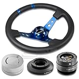 NRG-SRK-E46H+200GM+101LS+016RBL, NRG Innovations 13.78" 350mm 3" Deep Dish Style Black Leather Blue Center Marking Blue Spokes Racing Steering Wheel Combo with 6 Hole Short Hub Adapter with Gen 2.0 Gun Metal Quick Release with Silver Lock Hub Kit SRK-E46H