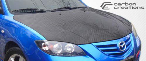 FeaturesCarbon Creations Carbon Fiber Mazda 3 4DR OEM Hood 1pc > 2004-2009NOTES: we recommend the use of hood pins will all hoods , INFO: 2004-2009 Mazda 3 4DR Carbon Creations OEM Hood - 1 Piece Local Pickup available in Southern California (Fullerton) and our warehouse in Las Vegas NV. Local Las Vegas Customers must pre-order the part so that it may be shipped to our warehouse.Carbon fiber parts are synonymous with racing and high performance vehicles. Carbon fiber parts are often standard on high-end and exotic automobiles. Most carbno fiber parts exhibit a FRP backside or skeleton (in the case of a hood or trunk) for support. Features:Grade-A Carbon Fiber,High Gloss Finish,UV Coating,Maximum Strength & Durability, in some cases carbon fiber parts can weight less than half of the OEM counterparts.Not only do Carbon Creations parts look great but another benefit of using Carbon Fiber parts is reducing weight. Carbon fiber parts are known for being light weight and Carbon Creations is able to ensure this weight loss by using 100% Grade A Carbon Fiber material. Carbon fiber hoods can weigh 50% less than factory steel OEM hoods.All parts ship by ground and may require a signature! You must be available to sign, please make sure your phone number is valid. If you are not available to sign in some cases you may be required to pickup from the terminal if you miss an appointment. Large parts are shipped via freight carrier. Be sure to inspect before signing for freight and sign as DAMAGED if the parts are damaged.additional information